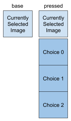 This widget will need a button (SelectionButton) that shows the currently selected image, then when pressed will show a dropdown menu(SelectionScrollBox) of the possible selections.