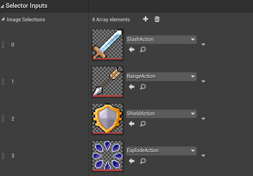 One of the necessary inputs are the images to displayed to represent the selections. We expose in the editor of course:
